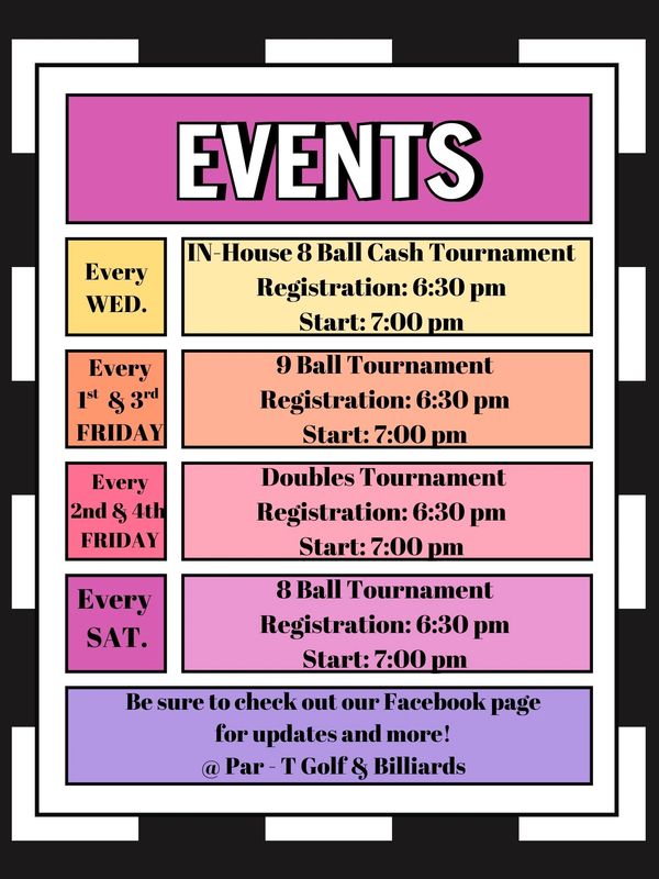 Each week we hold weekly Billiard tournaments. Tune into our Facebook page for weekly updates!